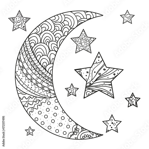 Moon And Stars With Abstract Patterns On Isolation Background Zen